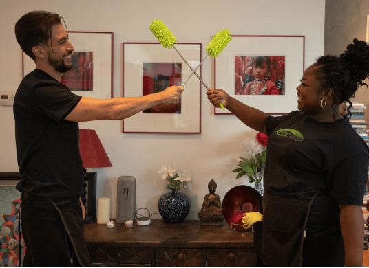 We provide residential and small commercial cleaning services with an eco-friendly twist. We’ve recruited some of our best employees from other fields such as the hospitality industry, retail, restaurants, nurses aides, home care, and others! Get paid to get fit!